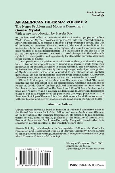 In this landmark effort to understand African American people in the New World, Gunnar Myrdal provides deep insight into the contradictions of American democracy as well as a study of a people within a people