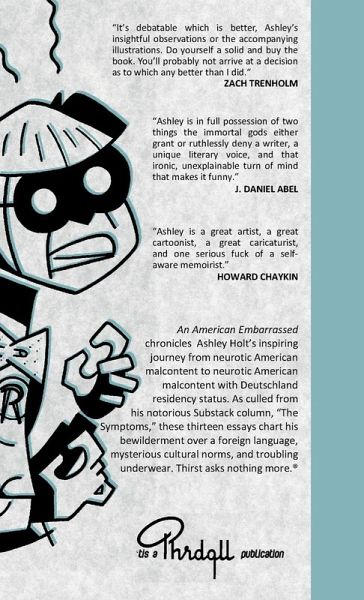An American Embarrassed chronicles writer and illustrator Ashley Holt's inspiring journey from neurotic American malcontent to neurotic American malcontent with Deutschland residency status. As culled from his notorious Substack column, "The Symptoms," these thirteen essays chart his bewilderment over a foreign language, mysterious cultural norms, and troubling underwear. Thirst asks nothing more.®