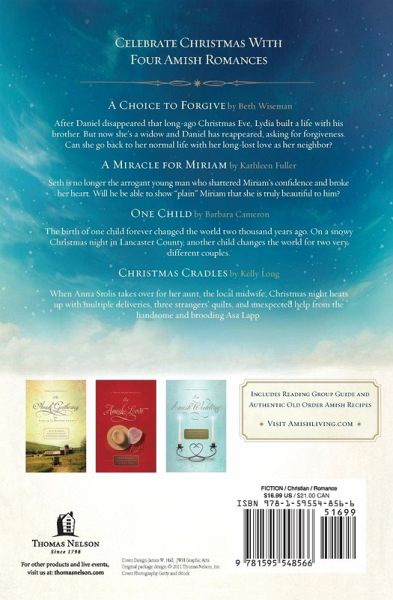 December in Paradise. A time of hope, redemption, and new life. "A Choice To Forgive" by Beth Wiseman. After Daniel disappeared that long-ago Christmas Eve, Lydia built a life with his brother. But now she's a widow and Daniel has reappeared, asking for forgiveness. But can she go back to her normal life with her long-lost love as her neighbor? ""A Miracle for Miriam"" by Kathleen Fuller. Seth is no longer the arrogant young man who shattered Miriam's confidence and broke her heart. But can he convince "plain" Miriam that she is truly beautiful to him? """One Child""" by Barbara Cameron. The birth of one child forever changed the world two thousand years ago. On a snowy Christmas night in Lancaster County, another child changes the world for two very different couples.