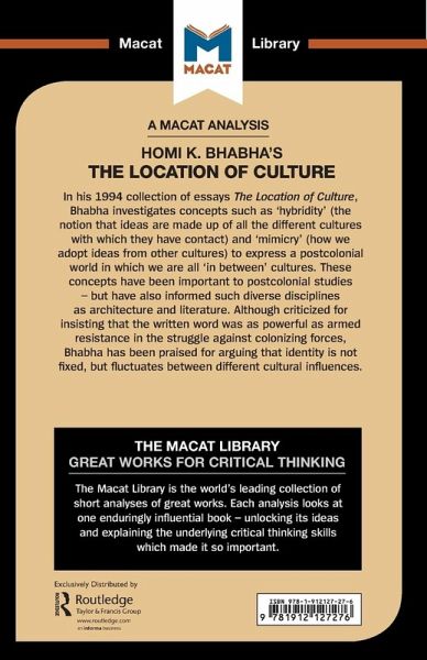 Ways in to the Text Who was Homi K. Bhabhaa? What does The Location of Culture Say? Why does The Location of Culture Matter? Section 1: Influences Module 1: The Author and the Historical Context Module 2: Academic Context Module 3: The Problem Module 4: The Author's Contribution Section 2: Ideas Module 5: Main Ideas Module 6: Secondary Ideas Module 7: Achievement Module 8: Place in the Author's Work Section 3: Impact Module 9: The First Responses Module 10: The Evolving Debate Module 11: Impact and Influence Today Module 12: Where Next? Glossary of Terms People Mentioned in the Text Works Cited
