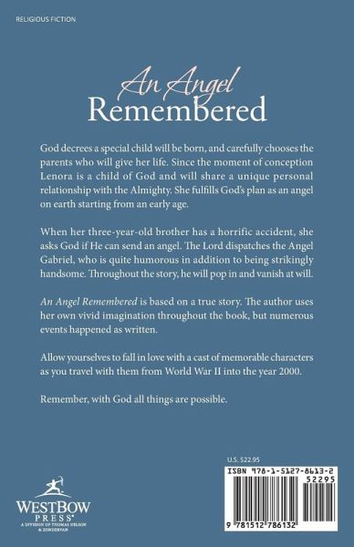 God decrees a special child will be born, and carefully chooses the parents who will give her life. Since the moment of conception Lenora is a child of God and will share a unique personal relationship with the Almighty. She fulfills God’s plan as an angel on earth starting from an early age. When her three-year-old brother has a horrific accident, she asks God if He can send an angel. The Lord dispatches the Angel Gabriel, who is quite humorous in addition to being strikingly handsome. Throughout the story, he will pop in and vanish at will. An Angel Remembered is based on a true story. The author uses her own vivid imagination throughout the book, but numerous events happened as written. Allow yourselves to fall in love with a cast of memorable characters as you travel with them from World War II into the year 2000. Remember, with God all things are possible.