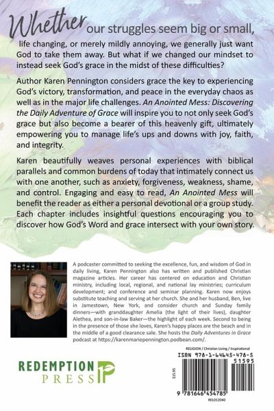 Whether our struggles seem big or small, life changing, or merely mildly annoying, we generally just want God to take them away. But what if we changed our mindset to instead seek God's grace in the midst of these difficulties? Author Karen Pennington considers grace the key to experiencing God's victory, transformation, and peace in the everyday chaos as well as in the major life challenges. An Anointed Mess: Discovering the Daily Adventure of Grace will inspire you to not only seek God's grace but also become a bearer of this heavenly gift, ultimately empowering you to manage life's ups and…mehr