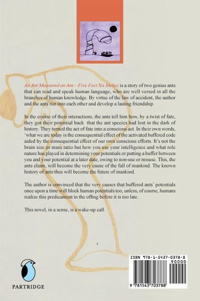 An Ant Measured an Ant-Five Feet Six Inches is a story of two genius ants that can read and speak human language, who are well versed in all the branches of human knowledge. By virtue of the law of accident, the author and the ants run into each other and develop a lasting friendship. In the course of their interactions, the ants tell him how, by a twist of fate, they got their potential back that the ant species had lost in the dark of history. They turned the act of fate into a conscious act. In their own words, 'what we are today is the consequential effect of the activated buffered code aided by the consequential effect of our own conscious efforts. It's not the brain size or mass ratio but how you use your intelligence and what role nature has played in determining your potentials or putting a buffer between you and your potential at a later date, owing to non-use or misuse. This, the ants claim, will become the very cause of the fall of mankind. The known history of ants thus will become the future of mankind. The author is convinced that the very causes that buffered ants' potentials once upon a time will block human potentials too, unless, of course, humans realize this predicament in the offing before it is too late. This novel, in a sense, is a wake-up call.