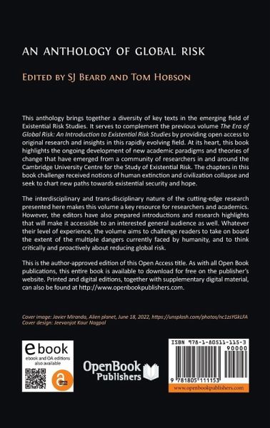 This anthology brings together a diversity of key texts in the emerging field of Existential Risk Studies. It serves to complement the previous volume The Era of Global Risk: An Introduction to Existential Risk Studies by providing open access to original research and insights in this rapidly evolving field. At its heart, this book highlights the ongoing development of new academic paradigms and theories of change that have emerged from a community of researchers in and around the Centre for the Study of Existential Risk. The chapters in this book challenge received notions of human extinction…mehr
