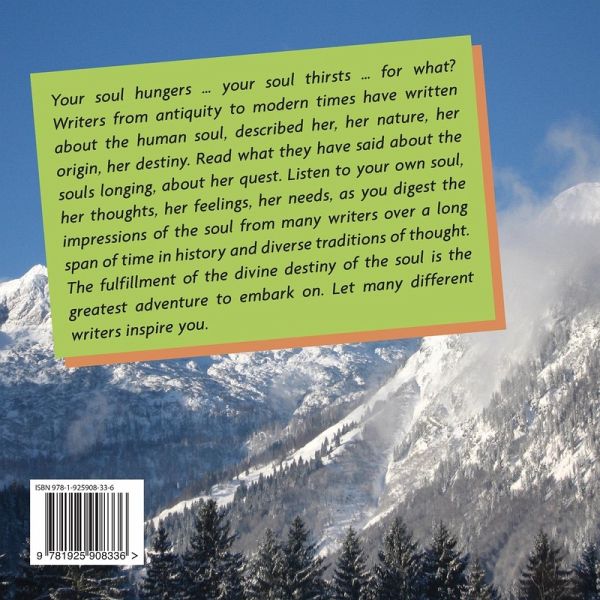 Hildegard Grivell's uplifting book, An anthology of the soul, seeks to enlighten the reader. She says. Your soul hungers ... your soul thirsts ... for what? Writers from antiquity to modern times have written about the human soul, described her, her nature, her origin, her destiny. Read what they have said about the souls longing, about her quest. Listen to your own soul, her thoughts, her feelings, her needs, as you digest the impressions of the soul from many writers over a long span of time in history and diverse traditions of thought. The fulfilment of the divine destiny of the soul is the greatest adventure to embark on. Let many different writers inspire you.