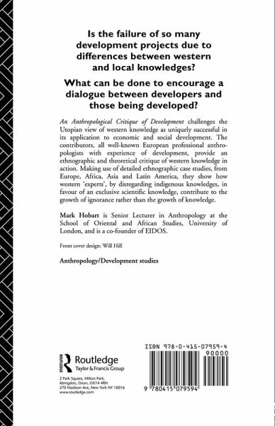 Questioning the utopian image of western knowledge as a uniquely successful achievement in its application to economic and social development, this provocative volume, the latest in the EIDOS series, argues that it is unacceptable to dismiss problems encountered by development projects as the inadequate implementation of knowledge. Rather, it suggests that failures stem from the constitution of knowledge and its object. By focussing on the ways in which agency in development is attributed to experts, thereby turning previously active participants into passive subjects or ignorant objects, the contributors claim that the hidden agenda to the aims of educating and improving the lives of those in the undeveloped world falls little short of perpetuating ignorance.