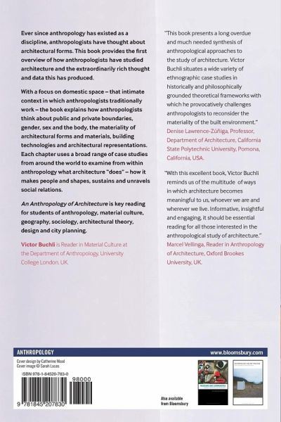 "No work specfically addresses architecture quite as extensively as this book by Victor Buchli ... In this regard, [An Anthropology of Architecture] does a fantastic job by theoretically linking anthropological knowledge in a way that is rarely seen elsewhere ... I am personally doubly indebted to the author (firstly) for his amazing use of anthropological theories and empirical cases (and secondly) in order to push back the frontiers of our understanding of the human experience of architecture. - Urbanities - Nathalie Boucher, Institut National de la Recherche Scientifique - Centre Urbanisation Culture Société, Canada [An Anthropology of Architecture] makes an important contribution to debates of broad interest. It deserves to be widely read, including by those interested in material culture, architecture, and space in the disciplines of archaeology, anthropology, architecture, and beyond. - Journal of the Royal Anthropological Institute - Thomas Yarrow, Durham University Victor Buchli's work is to be recommended to anyone who is interested in exploring correlations between the sociocultural worl and materiality from a theoretical perspective ... With the book An Anthropology of Architecture, Buchli is expanding the discourse of material cultural studies in an essential way to include the aspect of the role played by the built world, which in this context had previously been discussed only on the sidelines or in various individual studies. - GAM Architecture Magazine - Manfred Omahna (Translation: Dawn Michelle d'Atri) Architecture is far more than the materials and designs used in construction for, as anthropologist Buchli (Univ. College London) states in his first sentence, ""buildings make people."" Ethnographic glimpses range from Mongolian yurts to the ""sick building syndrome"" of certain London high-rises. Buchli's volume is ""an anthropology,"" and deliberately idiosyncratic. His prose is not easily followed, and allusions may elude those lacking knowledge of the literatures to which he turns; still, intellectual rewards abound in Buchli's pages. Summing Up: Recommended. Graduate students, faculty. - CHOICE - A. F. Roberts, University of California, Los Angeles Victor Buchli's interesting new book is ... a highly ambitious work, the first direct attempt to provide such a detailed anthropology of architecture as a subject ... An excellent piece of analysis. - LSE Review of Books - Luke McDonagh, University of Cardiff, UK Buchli's study is a very useful summary of the history and current status of the anthropology of architecture, achieved at a high level of philosophical analysis. Most importantly, it accomplishes its goal of attesting ""to the novel material forms and registers by which architecture makes people"" (p. 186). From now on, anthropologists must include the agentive objects of houses and other physical forms and possessions in their studies of culture. - Anthropology Review Database - Jack David Eller This book presents a long overdue and much needed synthesis of anthropological approaches to the study of architecture. Professor Buchli situates a wide variety of ethnographic case studies in historically and philosophically grounded theoretical frameworks with which he provocatively challenges anthropologists to reconsider the materiality of the built environment. - Denise Lawrence-Zúñiga, Professor, Department of Architecture, California State Polytechnic University, Pomona, California, USA With this excellent book, Victor Buchli reminds us of the multitude of ways in which architecture becomes meaningful to us, whoever we are and wherever we live. Informative, insightful and engaging, it should be essential reading for all those interested in the anthropological study of architecture. - Marcel Vellinga, Reader in Anthropology of Architecture, Oxford Brookes University, UK"