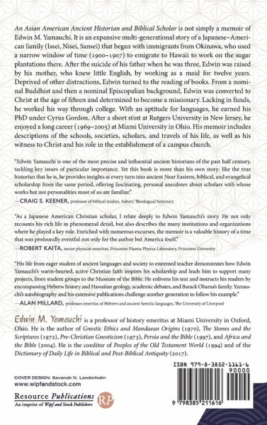An Asian American Ancient Historian and Biblical Scholar is not simply a memoir of Edwin M. Yamauchi. It is an expansive multi-generational story of a Japanese-American family (Issei, Nisei, Sansei) that began with immigrants from Okinawa, who used a narrow window of time (1900-1915) to emigrate to Hawaii to work on the sugar plantations there. After the suicide of his father when he was three, Edwin was raised by his mother, who knew little English, by working as a maid for twelve years. Deprived of other distractions, Edwin turned to the reading of books. From a nominal Buddhist and then a nominal Episcopalian background, Edwin was converted to Christ at the age of fifteen and determined to become a missionary. Lacking in funds, he worked his way through college. With an aptitude for languages, he earned his PhD under Cyrus Gordon. After a short stint at Rutgers University in New Jersey, he enjoyed a long career (1969-2005) at Miami University in Ohio. His memoir includes descriptions of the schools, societies, scholars, and travels of his life, as well as his witness to Christ and his role in the establishment of a campus church.