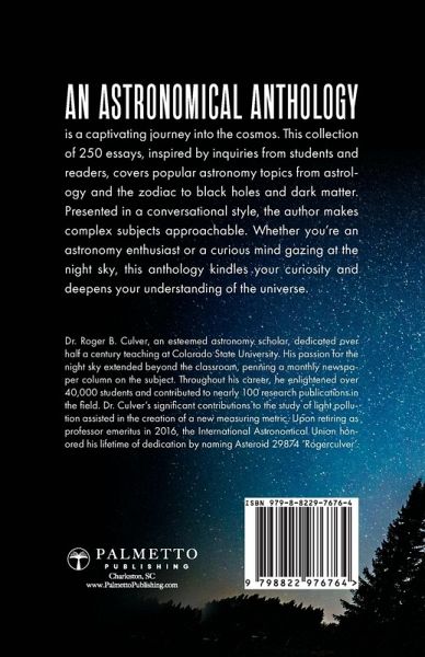 Uncover the Cosmos: Exploring the Enigmas of the Universe. From Black Hole Mysteries to the Signs of the Zodiac - A Casual Chat on Exciting Astronomical Topics. Engage with the Stars and Beyond. Delve into the fascinating world of popular astronomy with An Astronomical Anthology. This engaging compilation comprises nearly 250 essays, each one a unique exploration of various topics in the cosmos. The content is not dictated by rigid textbook standards but is rather inspired by the inquisitive minds of students, readers, and even casual conversations at social gatherings. The author has expertly curated a collection that spans a wide range of themes - from the mythologies behind the signs of the zodiac to the profound mysteries of black holes and dark matter. Each essay is crafted as a concise response to intriguing questions, making this anthology the perfect companion for anyone with a curiosity for the universe. Far from being a dry lecture, the author presents this material in a conversational tone, making each topic approachable and engaging. The relaxed style transforms complex astronomical concepts into accessible explanations, inviting readers into an easy dialogue with the cosmos. This book is an open invitation to anyone who has ever looked up at the night sky with wonder and yearned for a deeper understanding. In An Astronomical Anthology, you'll find answers to many of the questions you've always had, and you'll discover new questions that you never knew to ask. It's a journey through the cosmos, one casual conversation at a time. Whether you're a student, an avid reader of astronomy columns, or simply someone with an interest in the stars, this anthology is sure to ignite your curiosity and deepen your understanding of the universe. Your exploration of the cosmos begins here, in the pages of An Astronomical Anthology. Experience the universe in a most unique way, one essay at a time.