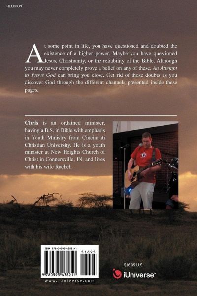 At some point in life, you have questioned and doubted the existence of a higher power. Maybe you also question Jesus and the reliability of the Bible. Although you may never completely prove a belief on any of these, An Attempt to Prove God can bring you really close. Get rid of those doubts as you discover God through the different channels presented inside these pages.