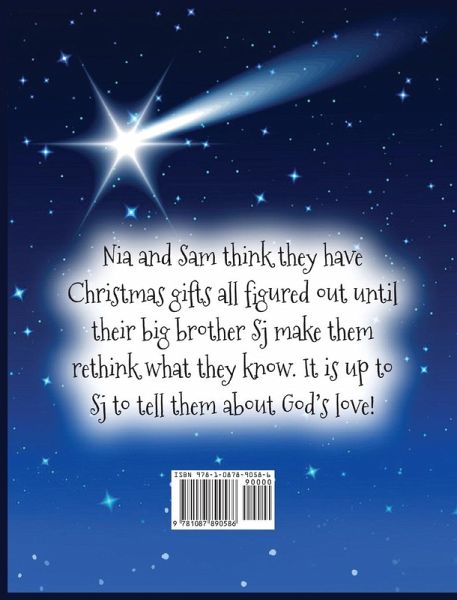Nia and Sam think they have Christmas gifts all figured out until their big brother Sj make them rethink what they know. It is up to their big brother Sj to tell them about God's love! Share the story of the birth of Christ with family and friends. Follow the sibling as they discover the meaning of gifts at Christmas. This book will inspire readers to learn more about God's Love. An Awesome Christmas Gift will engage all readers. Start a new Christmas Tradition for your family with An Awesome Christmas Gift. Parents and children will enjoy this story and their time together.