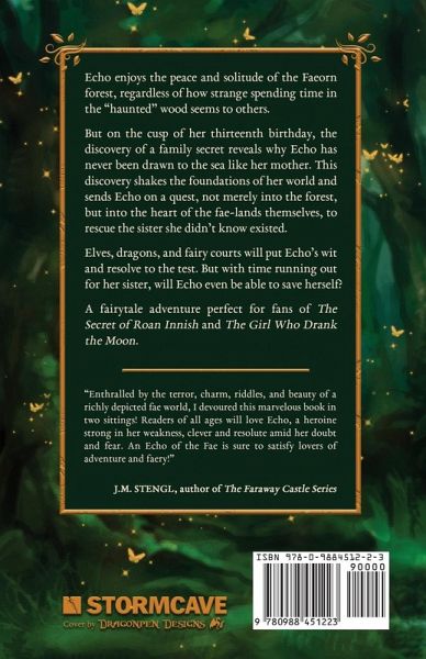 Echo enjoys the peace and solitude of the Faeorn forest, regardless of how strange spending time in the "haunted" wood seems to others. But on the cusp of her thirteenth birthday, the discovery of a family secret reveals why Echo has never been drawn to the sea like her mother. This discovery shakes the foundations of her world and sends Echo on a quest, not merely into the forest, but into the heart of the fae-lands themselves, to rescue the sister she didn't know existed. Elves, dragons, and fairy courts will put Echo's wit and resolve to the test. But with time running out for her sister, will Echo even be able to save herself? A fairytale adventure perfect for fans of The Secret of Roan Innish and The Girl Who Drank the Moon. ENDORSEMENTS: "Enthralled by the terror, charm, riddles, and beauty of a richly depicted fae world, I devoured this marvelous book in two sittings! Readers of all ages will love Echo, a heroine strong in her weakness, clever and resolute amid her doubt and fear. An Echo of the Fae is sure to satisfy lovers of adventure and faery!" -- J.M. Stengl, author of The Faraway Castle Series"Jenelle Schmidt has a gift for drawing readers into the action even from the very first sentence-and An Echo of the Fae is no exception. I was instantly captivated by this timeless story of adventure, discovery, friendship and family. Not only is An Echo of the Fae a book families can enjoy together, it is also one that leaves readers with full hearts, ignited imaginations, and a longing to embark on their own adventure." -- Jennifer Marshall Bleakley, author of Joey: How a Blind Rescue Horse Helped Others Learn to See