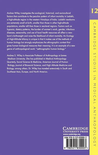 Andrea Wiley investigates the ecological, historical, and socio-cultural factors that contribute to the peculiar pattern of infant mortality in Ladakh, a high-altitude region in the western Himalayas of India. Ladakhi newborns are extremely small at birth, smaller than those in other high-altitude populations, smaller still than those in sea level regions. Factors such as hypoxia, dietary patterns, the burden of women's work, gender, infectious diseases, seasonality, and use of local health resources all affect a newborn's birth weight and raise the likelihood of infant mortality. An Ecology of High-Altitude Infancy is unique in that it makes use of the methods of human biology but strongly emphasizes the ethnographic context that gives human biological measures their meaning. It is an example of a new genre of anthropological work: 'ethnographic human biology'.