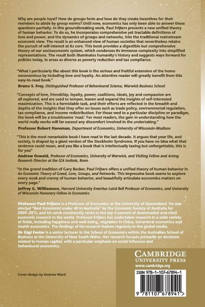 Why are people loyal? How do groups form and how do they create incentives for their members to abide by group norms? Until now, economics has only been able to partially answer these questions. In this groundbreaking work, Paul Frijters presents a new unified theory of human behaviour. To do so, he incorporates comprehensive yet tractable definitions of love and power, and the dynamics of groups and networks, into the traditional mainstream economic view. The result is an enhanced view of human societies that nevertheless retains the pursuit of self-interest at its core. This book provides a digestible but comprehensive theory of our socioeconomic system, which condenses its immense complexity into simplified representations. The result both illuminates humanity's history and suggests ways forward for policies today, in areas as diverse as poverty reduction and tax compliance.