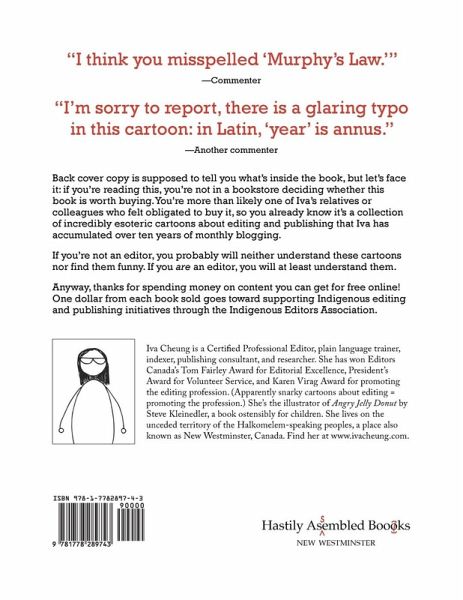 A collection of esoteric cartoons about editing, publishing, indexing, and freelancing, accumulated over ten years of monthly blogging at ivacheung.com. One dollar from each book sold goes toward supporting Indigenous editing and publishing initiatives through the Indigenous Editors Association.