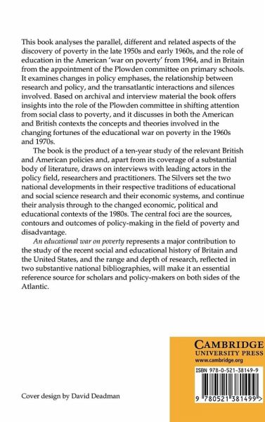 This book analyses the parallel, different and related aspects of the discovery of poverty in the late 1950s and early 1960s, and the role of education in the American 'war on poverty' from 1964, and in Britain from the appointment of the Plowden committee on primary schools. It examines changes in policy emphases, the relationship between research and policy, and the transatlantic interactions and silences involved. Based on archival and interview material the book offers new insights into the role of the Plowden committee in shifting attention from social class to poverty, and it discusses in both the American and British contexts the concepts and theories involved in the changing fortunes of the educational war on poverty in the 1960s and 1970s. An Educational War on Poverty represents a major contribution to the study of the recent social and educational history of Britain and the United States, and the range and depth of research, will make it an essential reference source for scholars and policy-makers on both sides of the Atlantic.