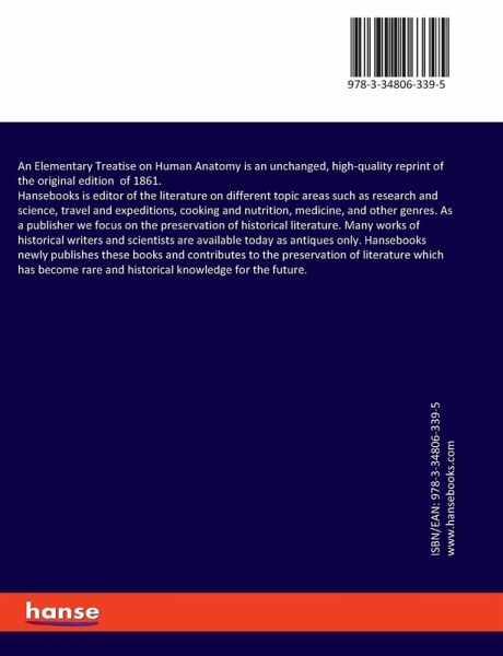 An Elementary Treatise on Human Anatomy is an unchanged, high-quality reprint of the original edition of 1861.Hansebooks is editor of the literature on different topic areas such as research and science, travel and expeditions, cooking and nutrition, medicine, and other genres. As a publisher we focus on the preservation of historical literature. Many works of historical writers and scientists are available today as antiques only. Hansebooks newly publishes these books and contributes to the preservation of literature which has become rare and historical knowledge for the future.