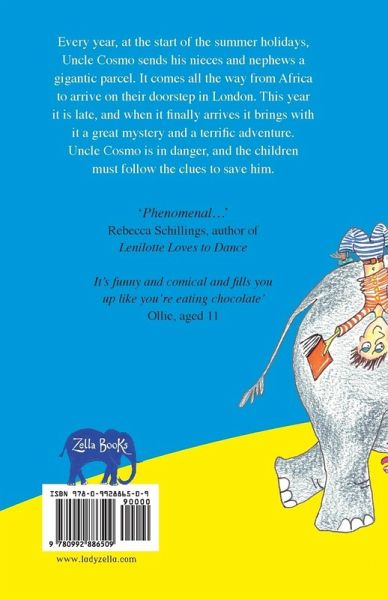 Every year, at the start of the summer holidays, Uncle Cosmo sends his nieces and nephews a gigantic parcel. It comes all the way from Africa to arrive on their doorstep in London. This year it is late, and when it finally arrives it brings with it a great mystery and a terrific adventure. Uncle Cosmo is in danger, and the children must follow the clues to save him. 'Phenomenal...' Rebecca Schillings, author of Lenilotte Loves to Dance. 'It's funny and comical and fills you up like you're eating chocolate.' Ollie, aged 11.