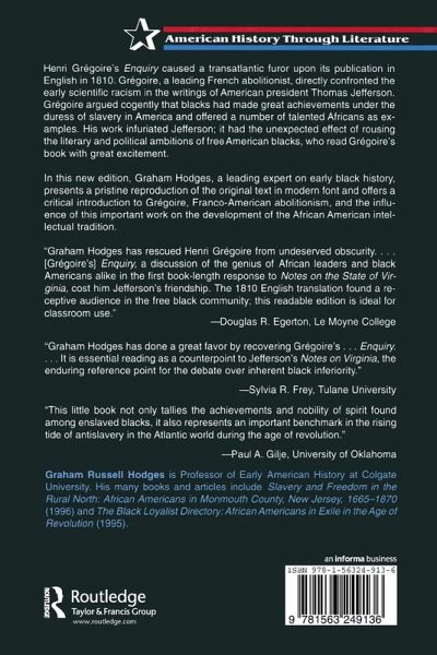 Amongst other things, this book is a devastating critique of Thomas Jefferson's Notes on the State of Virginia, in which he mused about black inferiority. Its publication in 1810, after Jefferson's opposition to its appearance, was a major event for African Americans.