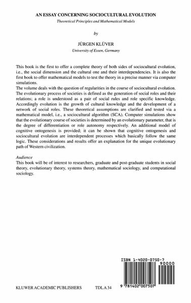 Writing about sociocultural evolution is always a complicated enterprise, because the subject is not only difficult in a scientific way but also in a political one. In particular since the events of September 11, 2001 the debates about the differences between cultures and their evolutionary developments have left the fields of pure scientific research once and for all. However, there have probably never been scientific discourses that did not touch the realms of political discussions - Darwin, Marx, the atomic physicists and the recent debates about genetic engineering are just a few examples. The aim of this book is not to take part in these debates but it is written as a contribution to the foundations of evolutionary theories in the social sciences. The readers will have to judge if I have succeeded with it. Perhaps essays like this one will help to clarify the problems we all have to face just now in regard to intercultural discourses. Theoretically and mathematically grounded insights into cultural development as the source of many political problems will not solve to how to deal with them them immediately but may serve as signposts in the long run.