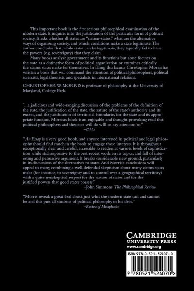 This important book is the first serious philosophical examination of the modern state. It inquires into the justification of this particular form of political society. It asks whether all states are 'nation-states', what are the alternative ways of organizing society, and which conditions make a state legitimate. The author concludes that, while states can be legitimate, they typically fail to have the powers (e.g sovereignty) that they claim. Many books analyze government and its functions but none focuses on the state as a distinctive form of political organization or examines critically the claims states make for themselves. In filling this lacuna Christopher Morris has written a book that will command the attention of political philosophers, political scientists, legal theorists, and specialists in international relations.