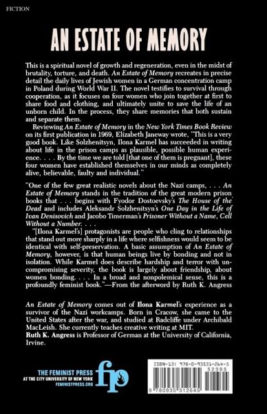 An Estate of Memory is a spiritual novel of growth and regeneration, even in the midst of brutality and death, that recreates in precise detail the daily lives of Jewish women in a Nazi concentration camp in Poland. The taste and feel of the days and seasons, of the varieties of work, are palpable, and the pre-camp memories of the prisoners braid the narrative brilliantly. The novel testifies to survival through cooperation, as it focuses on four women who join together at first to improve their own lives, and ultimately to save the life of a baby. As Adrienne Rich notes, An Estate of Memory is a woman’s eye view of living beyond the point where life is supposed to have meaning.”