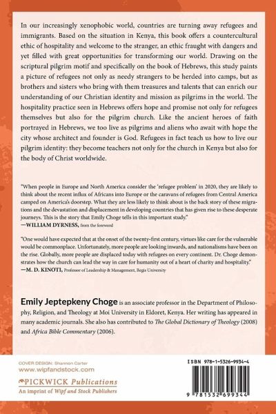 In our increasingly xenophobic world, countries are turning away refugees and immigrants. Based on the situation in Kenya, this book offers a countercultural ethic of hospitality and welcome to the stranger, an ethic fraught with dangers and yet filled with great opportunities for transforming our world. Drawing on the scriptural pilgrim motif and specifically on the book of Hebrews, this study paints a picture of refugees not only as needy strangers to be herded into camps, but as brothers and sisters who bring with them treasures and talents that can enrich our understanding of our Christian identity and mission as pilgrims in the world. The hospitality practice seen in Hebrews offers hope and promise not only for refugees themselves but also for the pilgrim church. Like the ancient heroes of faith portrayed in Hebrews, we too live as pilgrims and aliens who await with hope the city whose architect and founder is God. Refugees in fact teach us how to live our pilgrim identity: they become teachers not only for the church in Kenya but also for the body of Christ worldwide.