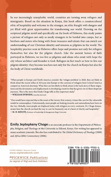In our increasingly xenophobic world, countries are turning away refugees and immigrants. Based on the situation in Kenya, this book offers a countercultural ethic of hospitality and welcome to the stranger, an ethic fraught with dangers and yet filled with great opportunities for transforming our world. Drawing on the scriptural pilgrim motif and specifically on the book of Hebrews, this study paints a picture of refugees not only as needy strangers to be herded into camps, but as brothers and sisters who bring with them treasures and talents that can enrich our understanding of our Christian identity and mission as pilgrims in the world. The hospitality practice seen in Hebrews offers hope and promise not only for refugees themselves but also for the pilgrim church. Like the ancient heroes of faith portrayed in Hebrews, we too live as pilgrims and aliens who await with hope the city whose architect and founder is God. Refugees in fact teach us how to live our pilgrim identity: they become teachers not only for the church in Kenya but also for the body of Christ worldwide.