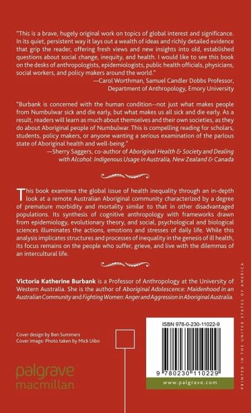 "Victoria Burbank is concerned with the human condition - not just what makes people from Numbulwar sick and die early, but what makes us all sick and die early. As a result, readers will learn as much about themselves and their own societies, as they do about Aboriginal people of Numbulwar. This is compelling reading for scholars, students, policy makers, or anyone wanting a serious examination of the parlous state of Aboriginal health and wellbeing." - Sherry Saggers, co-author of Aboriginal Health and Society and Dealing with Alcohol: Indigenous Usage in Australia, New Zealand & Canada