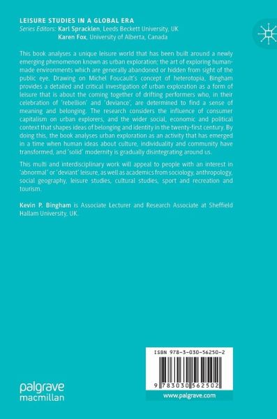 This book analyses a unique leisure world that has been built around a newly emerging phenomenon known as urban exploration; the art of exploring human-made environments which are generally abandoned or hidden from sight of the public eye. Drawing on Michel Foucault's concept of heterotopia, Bingham provides a detailed and critical investigation of urban exploration as a form of leisure that is about the coming together of drifting performers who, in their celebration of 'rebellion' and 'deviance', are determined to find a sense of meaning and belonging.