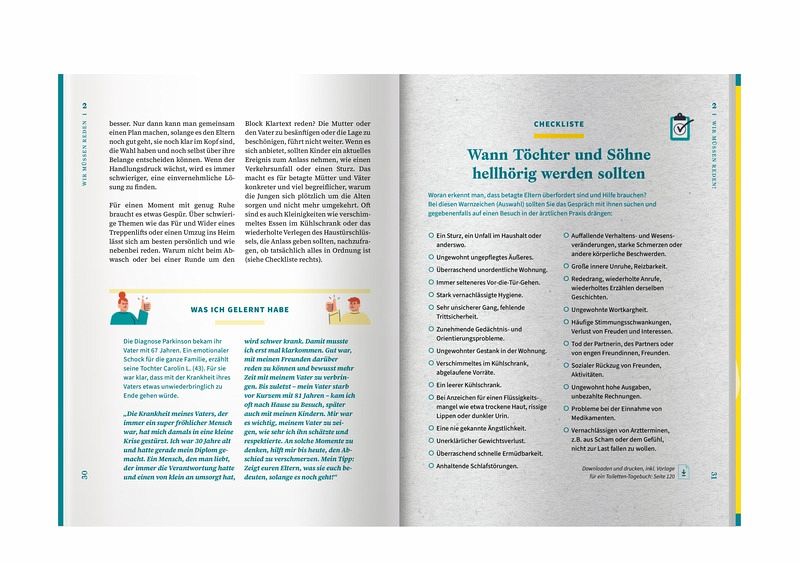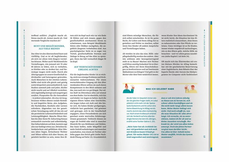 Wenn Eltern alt werden und zunehmend auf Hilfe angewiesen sind, ist das für alle in der Familie herausfordernd. Plötzlich ist nichts mehr wie immer. Aber wie gelingt es erwachsenen Kindern, was ihnen Sorgen macht, anzusprechen - ohne Streit und Missverständnisse - und einvernehmliche Lösungen für die jeweilige Lage zu finden? Dieser Ratgeber hilft Töchtern und Söhnen dabei, die Eltern im Alter zu begleiten, zu entscheiden, welche Unterstützung sie leisten können und möchten und für die Pflege der Eltern zu sorgen, ohne sich selbst zu überfordern. Mit zahlreichen Tipps und Coaching-Übungen für ein gutes Miteinander der Generationen, Informationen zu den häufigsten gesundheitlichen Problemen im Alter sowie Checklisten für die Pflege und zu finanzieller Vorsorge.