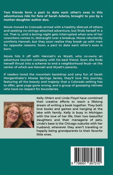 Two friends form a pact to date each other's exes in this adventurous ride for fans of Sarah Adams, brought to you by a mother daughter author duo. Moxie moved to Colorado armed with a healthy distrust of others and seeking no-strings-attached adventure, but finds herself in a rut. Her job feels repetitive, she lacks close friends, and even one-night-stands aren't exciting anymore. That is, until a boring night gets interrupted when one of her coworkers comes in, distraught over a breakup. Moxie reluctantly comforts Hannah, but they soon realize they break up with men for opposite reasons. Soon, a pact to date each other's exes is born. After some waffling, Hannah convinces Moxie to go first, and try dating her ex, Wyatt. Wyatt co-owns an adventure tourism company with his best friend. He and Moxie hit it off, but her distrust is quickly activated when she realizes that in an attempt to multi-task, Hannah has dragged her into a scheme to end a neighborhood feud, at the center of which are Hannah and Wyatt's parents. Wyatt must convince the new love of his life that his feelings are real, before he loses her, and the business that is everything he ever dreamed of. Moxie must open herself up to love in all its forms, before she alienates the only friends and partner she's ever had, and digs herself so deep into her rut, she'll never find her way out. If readers loved the mountain backdrop and zany fun of Sarah Morgenthaler's Moose Springs Series, they'll love this journey, featuring all the beauty and majesty that a Colorado setting has to offer, goat yoga gone wrong, and a group of gossiping retirees who have no respect for boundaries.