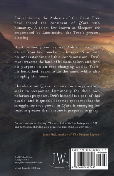For centuries, the Aobians of the Great Tree have shared the continent, Q'ara, with humanity. War has come and gone, and tensions for true rulership are beginning to rise once more. In Aobia, Sleepers share a symbiotic relationship with the Tree in which they live, empowered by Luminosity, the Tree's predominant blessing upon a select few people. Elsewhere on Q'ara, an unknown organisation seek to weaponise Luminosity for their own purposes. Meanwhile, Drift, a young Aobian who feels cynical towards the mysterious inner workings of his people's government, is exiled from Aobia - forever. Traversing the land of humans below, he must find his purpose in an ever-changing world, while his betrothed back home, Tarri, seeks to do the same.