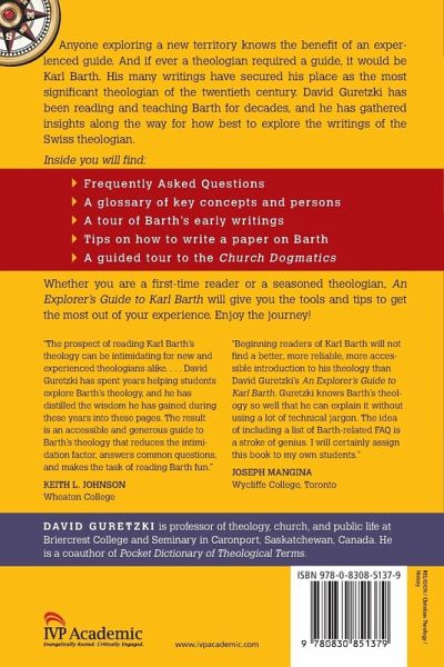 Anyone exploring a new territory knows the benefit of an experienced guide. A guide can make the difference between tiresome drudgery and a life-changing adventure. This is as true for exploring new thinkers and books as it is for places. If ever a theologian required a guide, it would be Karl Barth. His many writings have secured his place as the most significant theologian of the twentieth century. The massive Church Dogmatics alone spans over eight thousand pages and six million words. David Guretzki has been reading and teaching Barth for decades, and he has gathered numerous hints and notes along the way for how best to explore the writings of the Swiss theologian. Inside, you will find:frequently asked questions a glossary of key concepts and persons a tour guide to Barth's early writings tips on how to write a paper on Barth a guided tour to the Church Dogmatics Whether you are a first-time reader or a seasoned student, An Explorer's Guide to Karl Barth will give you the tools and tips to get the most out of your experience. Enjoy the journey! Books in the Explorer's Guide series are accessible guidebooks for those studying the great Christian texts and theologians from church history, helping readers explore the context in which these texts were written and navigate the rich yet complex terrain of Christian theology.