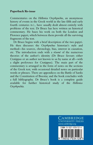 This is an historical commentary on the Hellenica Oxyrhynchia, an anonymous history of events in the Greek world in the late fifth and early fourth centuries BC. Basing his work on both the London and Florence papyri, which between them provide all the surviving fragments of the text, Dr Bruce's book is a complete guide available for further historical study of the Hellenica Oxyrhynchia.