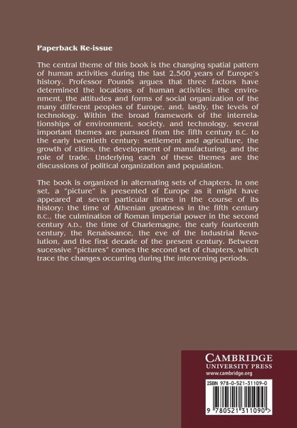 The central theme of this book is the changing spatial pattern of human activities during the last 2,500 years of Europe's history. Professor Pounds argues that three factors have determined the locations of human activities: the environment, the attitudes and forms of social organization of the many different peoples of Europe, and, lastly, the levels of technology.