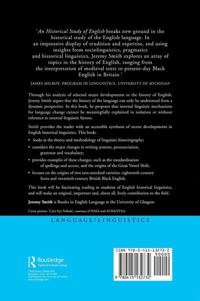 Through his analysis of selected major developments in the history of English, Jeremy Smith argues that the history of the language can only be understood from a dynamic perspective. He proposes that internal linguistic mechanisms for language change cannot be meaningfully explained in isolation or without reference to external linguistic factors. Smith provides the reader with an accessible synthesis of recent developments in English historical linguistics. His book: Looks at the theory and methodology of linguistic historiography . Considers the major changes in writing systems, pronunciation and grammar. Provides examples of these changes, such as the standardisation of spellings and accent and the origins of the Great Vowel Shift Focuses on the origins of two non-standard varieties; eighteenth century Scots and twentieth century British Black English.This book makes fascinating reading for students of English Historical linguistics, and is an original, important and above all, lively contribution to the field.