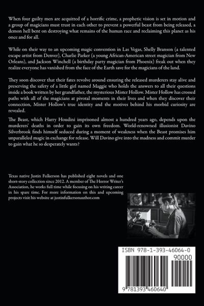 When four guilty men are acquitted of a horrific crime, a prophetic vision is set in motion and a group of magicians must trust in each other to prevent a powerful beast from being released, a demon hell bent on destroying what remains of the human race and reclaiming this planet as his once and for all. While on their way to an upcoming magic convention in Las Vegas, Shelly Branson (a talented escape artist from Denver), Charlie Parker (a young African-American street magician from New Orleans), and Jackson Winchell (a birthday party magician from Phoenix) freak out when they realize everyone has vanished from the face of the Earth save for the magicians of the land. They soon discover that their fates revolve around ensuring the released murderers stay alive and preserving the safety of a little girl named Maggie who holds the answers to all their questions inside a book written by her grandfather, the mysterious Mister Hollow. Mister Hollow has crossed paths with all of the magicians at pivotal moments in their lives and when they discover their connection, Mister Hollow's true identity and the motives behind his morbid curiosity are revealed. The Beast, which Harry Houdini imprisoned almost a hundred years ago, depends upon the murderers' deaths in order to gain its own freedom. World-renowned illusionist Davino Silverbrook finds himself seduced during a moment of weakness when the Beast promises him unparalleled magic in exchange for release. Will Davino give into the madness and commit murder to gain what he so desperately wants?