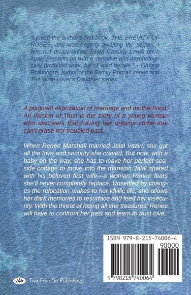 A poignant exploration of marriage and motherhood, An Illusion of Trust is the story of a young woman who discovers that having her dreams come true can't erase her nightmare past. When Renee Marshall married Jalal Vaziri, she got all the love and security she craved. But now, with a baby on the way, she has to leave her perfect seaside cottage to move into the mansion Jalal shared with his beloved first wife--a woman Renee fears she'll never completely replace. Unsettled by changes the relocation makes to her idyllic life, she allows her dark memories to resurface and feed her insecurity. With the threat of losing all she treasures, Renee will have to confront her past and learn to trust love.