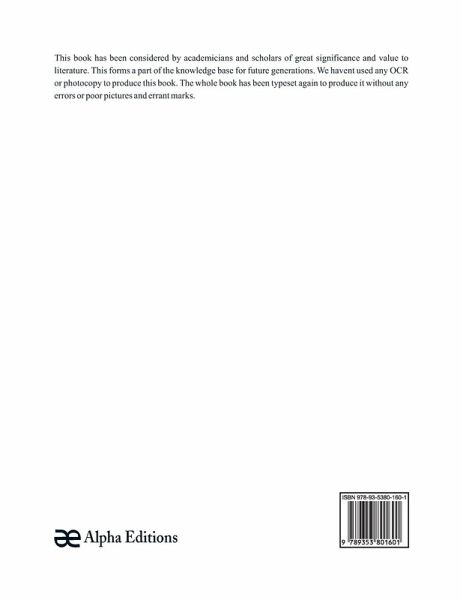 This book has been considered by academicians and scholars of great significance and value to literature. This forms a part of the knowledge base for future generations. We have represented this book in the same form as it was first published. Hence any marks seen are left intentionally to preserve its true nature.
