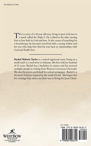 This is a story of a 40 year old man, living in post-civil war on a ranch called the Triple S. He is jilted at the altar causing him to lose faith in God and love. In the course of searching for a housekeeper he becomes involved with a young widow and her son who help him find his way back to relationships with God and finally love.