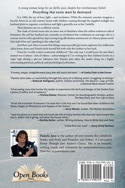 It is 1965, the era of love, light-and revolution. While the romantic narrator imagines a bucolic future in an old country house with children running through the dappled sunlight, her husband plots to organize a revolution and fight a guerrilla war in the Catskills. Their fantasies are on a collision course. The clash of visions turns into an inner war of identities when the author embraces radical feminism; she and her husband are comrades in revolution but combatants in marriage; she is a woman warrior who spends her days sewing long silk dresses reminiscent of a Henry James novel. One half of her isn't speaking to the other half. And then, just when it seems that things cannot possibly get more explosive, her wilderness cabin burns down and Pamela finds herself left with only the clothes on her back. From her vividly evoked existential childhood ("the only way I would know for sure that I existed was if others-lots of others-acknowledged it") to writing her first children's book on a sugar high during a glucose tolerance test, Pamela Jane takes the reader along on a highly entertaining personal, political, and psychological adventure.