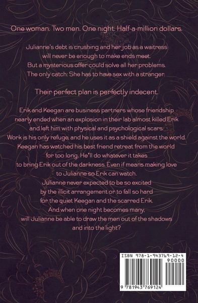 One woman. Two men. One night. Half a million dollars... Erik watches from the shadows, his scars a prison he can't escape. Work is his only refuge. Keegan has watched his best friend retreat from the world for too long after an explosion in their lab nearly killed Erik. Keegan will do whatever it takes to draw Erik out of the darkness. Erik is about to take Keegan up on that promise... Julianne has big dreams but she's in massive debt due to her mother's illness. Her waitressing job will never be enough to make ends meet. But a mysterious offer could solve all her problems. The only catch: She has to have sex with a stranger. Erik wants Keegan to make love to Julianne so he can watch. Keegan is shocked...and secretly thrilled. He wants Julianne just as much as Erik does. Julianne takes the money but never expected to be so excited by the illicit arrangement or to fall for the quiet Keegan and the scarred Erik. But when one night becomes an ongoing affair, will Julianne be able to draw the men out of the shadows and into the light?