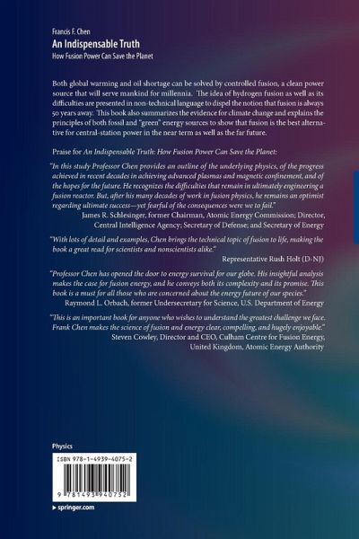 From the reviews: "The 'indispensable truth' is that Chen ... has written what may well be recognized as the definitive retrospective on the promise of endless supplies of cheap, clean nuclear energy from fusion, offering the prospect of realizing the promise at last. ... It is stylishly written, designed, and illustrated to appeal to general readers ... . Chen is in his comfort zone as he tells his story, and the indispensable truth is that it is just that-indispensable! Summing Up: Highly recommended. All levels/libraries." (L. W. Fine, Choice, Vol. 49 (3), November 2011) "With An Indispensable Truth: How Fusion Power Can Save the Planet, Frank Chen has provided a sweeping perspective on fusion energy. He covers everything from climage change to plasma instabilities. On climate change and energy, the view is best from 30 000 feet: The book provides a good high-level overview of the issues at stake...On fusion plasma physics, Chen's area of expertise, An Indispensable Truth provides an intuitive, up-close explanation of exciting recent advances and future challenges...An Indispensable Truth provides an exciting whirlwind tour of energy issues and technologies, with particular insight into fusion. Chen is correct to emphasize the tremendous progress that has been made in fusion research. ITER will produce hundreds of millions of watts of thermal energy from fusion, for periods of up to an hours. However, it remains for the world, and in particular the US, to decide if we will develop fusion into a practical energy source. We will need it." (Physics Today, Volume 65, Issue 2, February 2012)