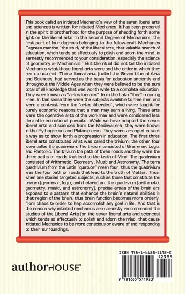 This book called an initiated Mechanic's view of the seven liberal arts and sciences is written for initiated Mechanics. It has been prepared in the spirit of brotherhood for the purpose of shedding forth some light on the liberal arts. In the second Degree of Mechanism, the first part of four degrees belonging to the fellow-craft Mechanics Degrees mention "the study of the liberal arts, that valuable branch of education, which tends so effectually to polish and adorn the mind, is earnestly recommended to your consideration, especially the science of geometry or Mechanism." But the ritual did not tell the initiated Mechanics what those liberal arts were and the order in which they are structured. These liberal arts (called the Seven Liberal Arts and Sciences) had served as the basis for education anciently and throughout the Middle Ages when they were believed to be the sum total of all knowledge that was worth while to a complete education. They were known as "artes liberales" from the Latin "liber" meaning Free. In this sense they were the subjects available to free men and were a contrast from the "artes illiberales", which were taught for purely economic reasons that a man may earn a living. These arts were the operative arts of the workmen and were considered less desirable educational pursuits. While we have adopted the seven liberal arts and sciences from the Medieval era, they were known in the Pythagorean and Platonic eras. They were arranged in such a way as to show forth a progression in education. The first three liberal arts constituted what was called the trivium; the other four were called the quadrivium. The trivium consisted of Grammar, Logic, and Rhetoric. The trivium the path of three roads and they were the three paths or roads that lead to the truth of Mind. The quadrivium consisted of Arithmetic, Geometry, Music and Astronomy. The term quadrivium from the Latin "quatuor" mean four, thus the quadrivium was the four path or roads that lead to the truth of Matter. Thus, when one studies targeted subjects, such as those that constitute the trivium (grammar, logic, and rhetoric) and the quadrivium (arithmetic, geometry, music, and astronomy), precise areas of the brain are exposed to a pattern that enhance the brain's natural abilities in that region of the brain, thus brain function becomes more orderly, from chaos to order to help accomplish any goal in life. And that is the reason why initiated mechanics are earnestly recommended the studies of the Liberal Arts (or the seven liberal arts and sciences) which tends so effectually to polish and adorn the mind, that cause initiated Mechanics to be more conscious or aware of and responding to their surroundings.