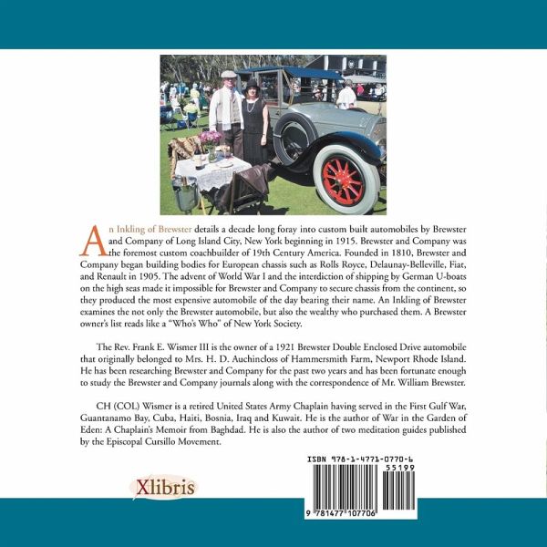 An Inkling of Brewster details a decade long foray into custom built automobiles by Brewster and Company of Long Island City, New York beginning in 1915. Brewster and Company was the foremost custom coachbuilder of 19th Century America. Founded in 1810, Brewster and Company began building bodies for European chassis such as Rolls Royce, Delaunay-Belleville, Fiat, and Renault in 1905. The advent of World War I and the interdiction of shipping by German U-boats on the high seas made it impossible for Brewster and Company to secure chassis from the continent, so they produced the most expensive automobile of the day bearing their name. An Inkling of Brewster examines not only the Brewster automobile, but also the wealthy who purchased them. A Brewster owner's list reads like a "Who's Who" of New York Society. The Rev. Frank E. Wismer III is the owner of a 1921 Brewster Double Enclosed Drive automobile that originally belonged to Mrs. H. D. Auchincloss of Hammersmith Farm, Newport Rhode Island. He has been researching Brewster and Company for the past two years and has been fortunate enough to study the Brewster and Company journals along with the correspondence of Mr. William Brewster. CH (COL) Wismer is a retired United States Army Chaplain having served in the First Gulf War, Guantanamo Bay, Cuba, Haiti, Bosnia, Iraq and Kuwait. He is the author of War in the Garden of Eden: A Chaplain's Memoir from Baghdad. He is also the author of two meditation guides published by the Episcopal Cursillo Movement.