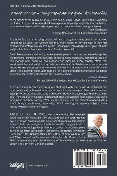 As memories of the Global Financial Crisis begin to fade, David Rowe's book is a timely reminder of the need to expand risk management beyond purely technical analysis to broader consideration of social, organizational, political and technological issues. -Alan Greenspan, Former Chairman of the Federal Reserve Board This book is a broad ranging critique of risk management that should be required reading for all Chief Risk Officers and their staff. Whether they are new to their role or seasoned professionals tested by the unexpected, risk managers will gain valuable insights into the science and practice of their chosen field. David Rowe has selected topics drawn from his years in the trenches where he applied his technical expertise and common sense to close potentially dangerous gaps in risk management analytics, assumptions and systems. Every chapter offers real world examples and insights into both the value and the limitations of common risk measures and processes and how some of these contributed to the Global Financial Crisis. The book impresses upon readers the need to broaden their perspective based on experience, healthy skepticism and common sense. -David Martens, Former CRO of the Federal Home Loan Bank of San Francisco There are many highly technical books that deal with the details of statistical and other analytical tools used in economic and financial analysis. This book is not an attempt to add to that vast body of material. Rather, it encourages readers to step back from the swirling mass of details that often characterize such analysis and ask a more basic question, namely, "What are the assumptions and mental frameworks they should bring to such work, especially to the frustratingly amorphous subject of risk measurement and management?"