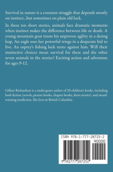 Survival in nature is a constant struggle that depends mostly on instinct...but sometimes on plain old luck. In these ten short stories, animals face dramatic moments when instinct makes the difference between life or death. A young mountain goat trusts his unproven agility in a daring leap. An eagle uses her powerful wings in a desperate bid to live. An osprey's fishing luck turns against him. Will their instinctive choices mean survival for these and the other seven animals in the stories? Exciting action and adventure for ages 9-12.