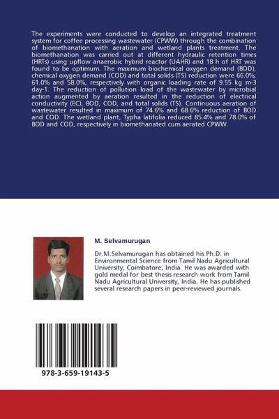 The experiments were conducted to develop an integrated treatment system for coffee processing wastewater (CPWW) through the combination of biomethanation with aeration and wetland plants treatment. The biomethanation was carried out at different hydraulic retention times (HRTs) using up ow anaerobic hybrid reactor (UAHR) and 18 h of HRT was found to be optimum. The maximum biochemical oxygen demand (BOD), chemical oxygen demand (COD) and total solids (TS) reduction were 66.0%, 61.0% and 58.0%, respectively with organic loading rate of 9.55 kg m-3 day-1. The reduction of pollution load of the wastewater by microbial action augmented by aeration resulted in the reduction of electrical conductivity (EC), BOD, COD, and total solids (TS). Continuous aeration of wastewater resulted in maximum of 74.6% and 68.6% reduction of BOD and COD. The wetland plant, Typha latifolia reduced 85.4% and 78.0% of BOD and COD, respectively in biomethanated cum aerated CPWW.