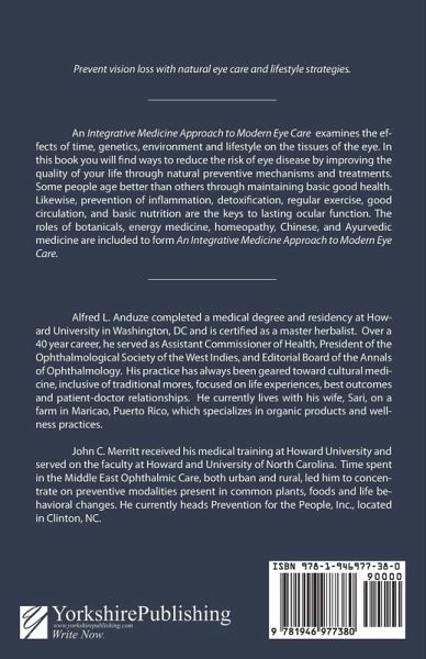In this book you will find ways to reduce the risk of eye disease by improving the quality of your life through natural preventive mechanisms and treatments. Some people age better than others through maintaining basic good health. Likewise, prevention of inflammation, detoxification, regular exercise, good circulation, and basic nutrition are the keys to lasting ocular function. The roles of botanicals, energy medicine, homeopathy, Chinese, and Ayurvedic medicine are included to form An Integrative Medicine Approach to Modern Eye Care.